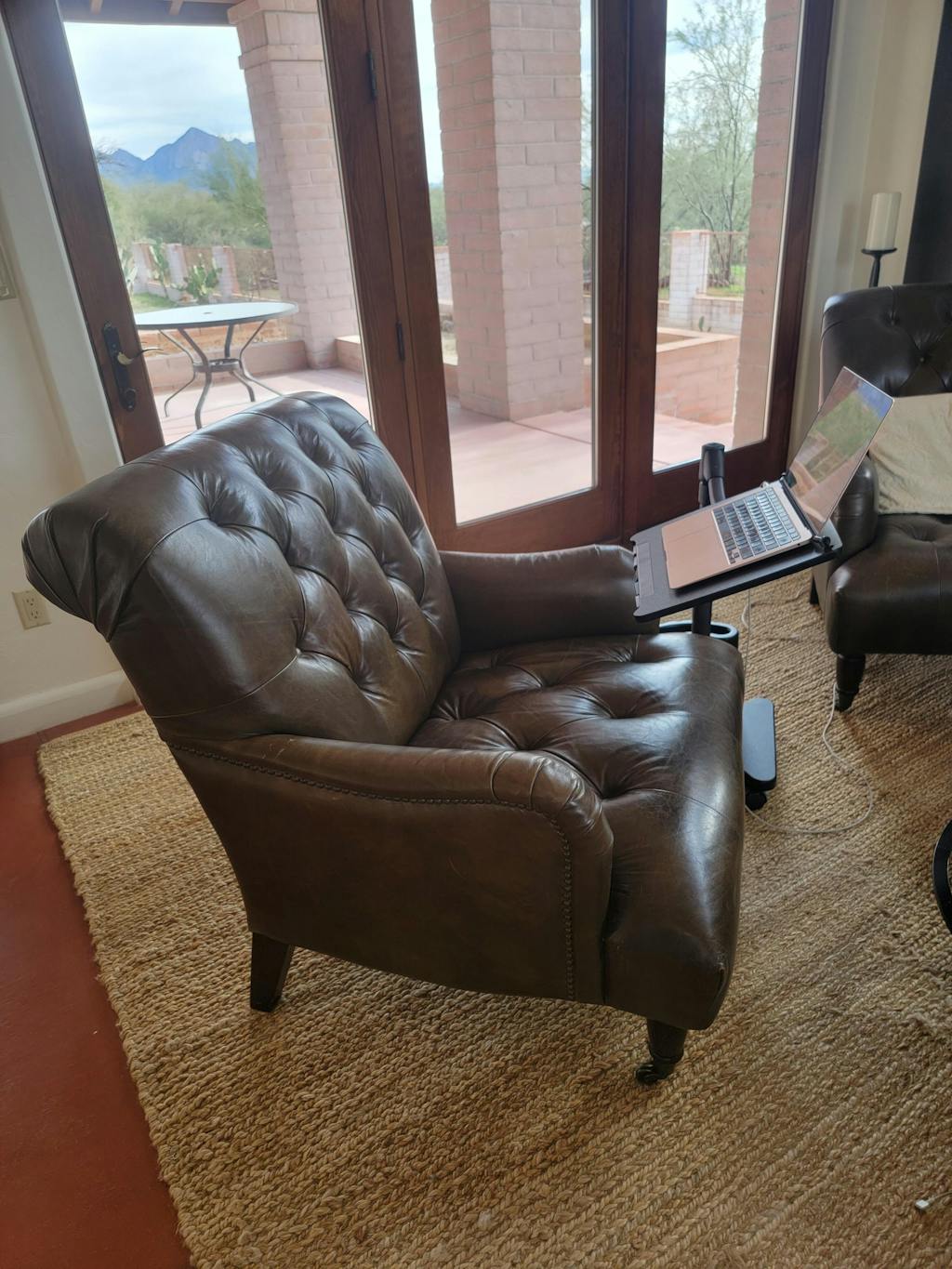 WHAT IT HOLDS AND HOW: The desktop supports laptops up to 16 inches and 5 pounds, tilting up to 70 degrees for reclining or supine use. An optional safety bungee secures laptops when the desktop is tilted. It also holds tablets, sketchpads, and documents, making it ideal for creative projects or casual reading. The specially shaped base hugs the corners of furniture, and the rotating arm extends perfectly over your lap for ultimate usability.