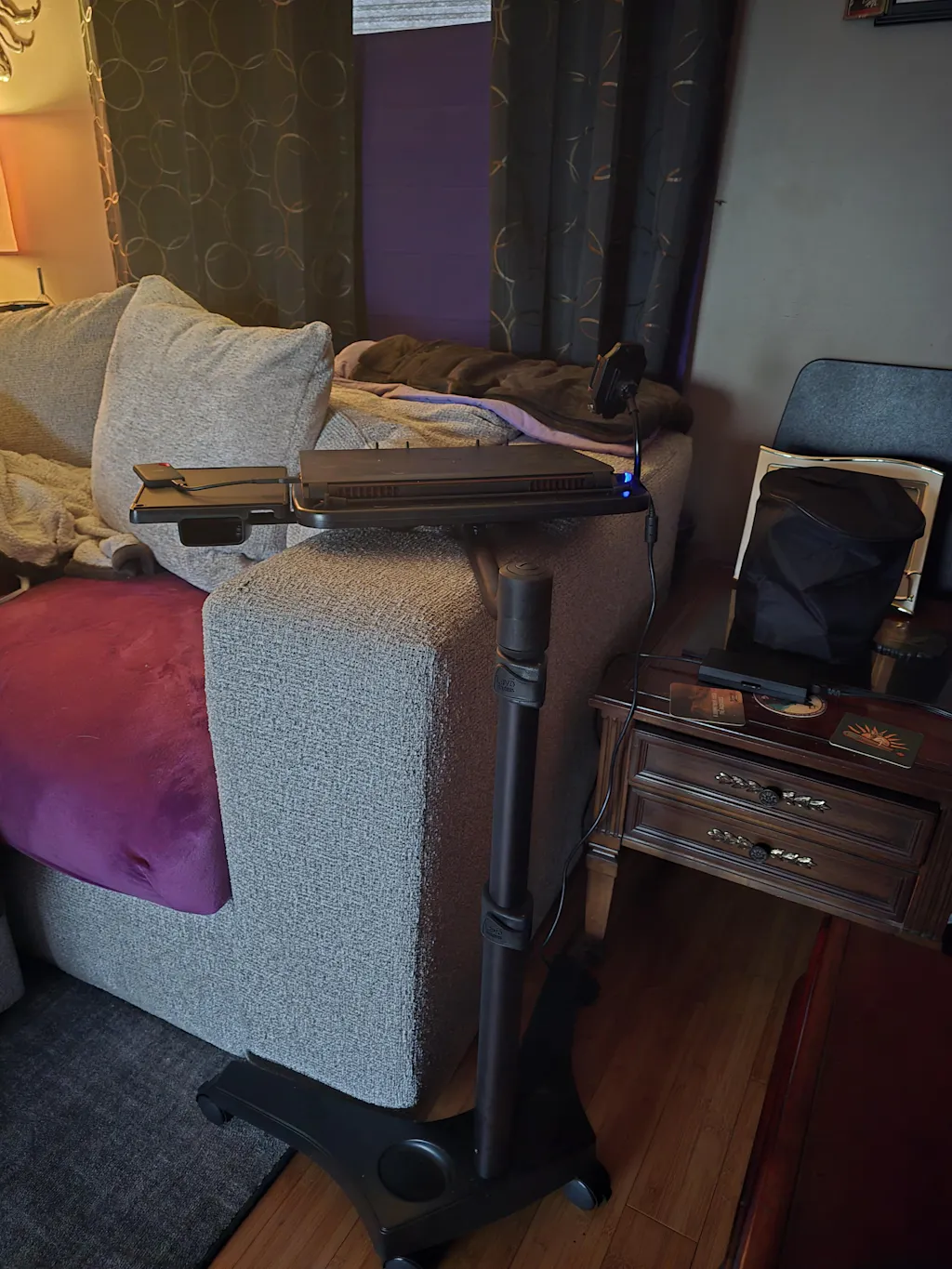 Your bed, couch, or favorite reading chair can now double as a workspace (workstation). Our LEVO Rolling Laptop Workstation extends over your furniture so you can sit comfortably all the way back in your chair, sofa, or bed. 5 freely moving adjustments give you the freedom to work in any position you want. Sit, stand or lie down. Our LEVO Laptop stand gives you the option to do all three.